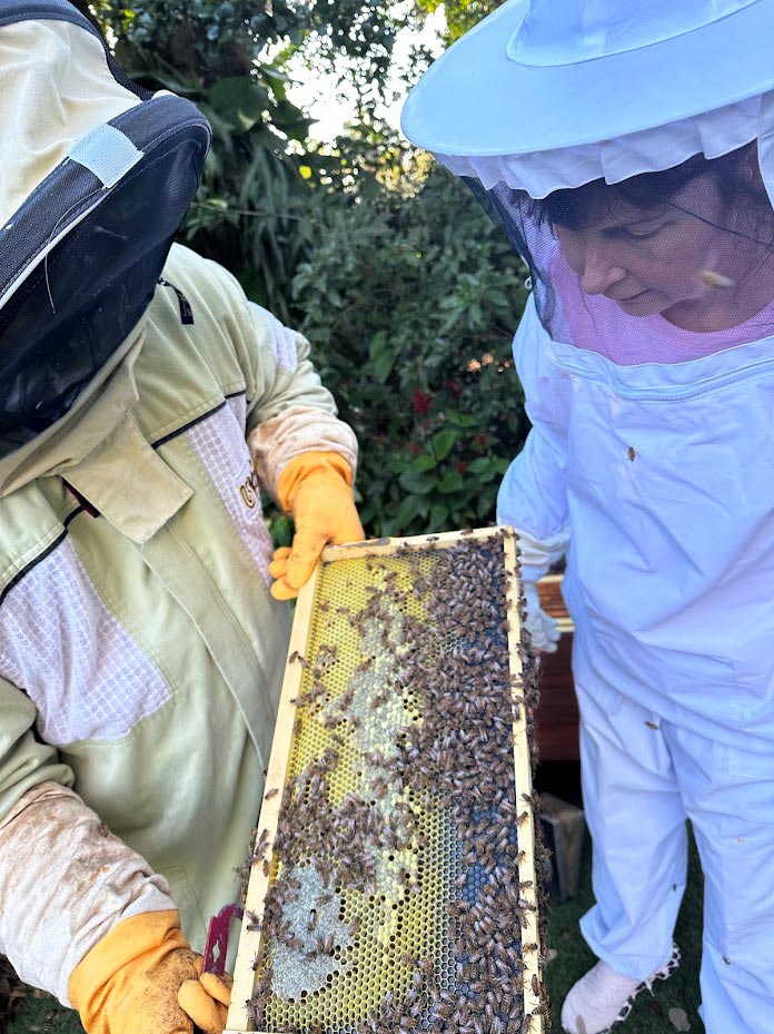 Then comes the most exciting part: we’ll open our hives, and you’ll get to participate in a real inspection, hold frames full of bees, observe them up close, and take photos and videos of your experience.